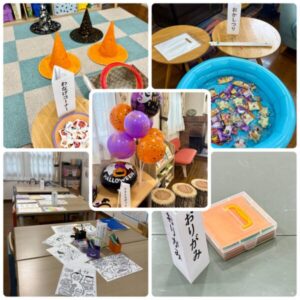 輪投げやお菓子釣り、ハロウィーンの塗り絵などのコーナーでは、笑顔があふれていました😊🍬
