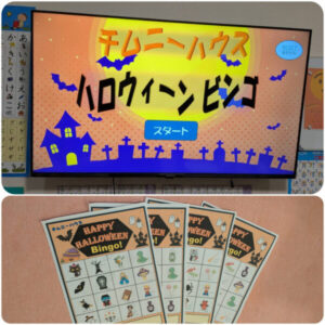 魔女の帽子に向かって投げる輪投げ🎩や、ハロウィーン仕様のお手玉投げ🎃、そしてチムニーオリジナルで作成したビンゴシステムの絵合わせビンゴ🧩!