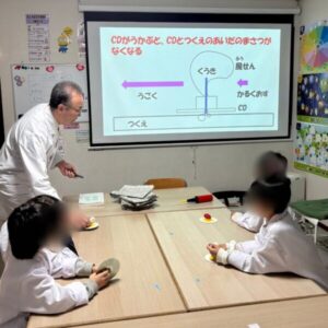 CD盤で風船ホバークラフトを作って“摩擦の少ない世界”を体験したり、2冊の雑誌のページを交互に重ねて両側から引っぱり、摩擦の強さを実感したりしました。