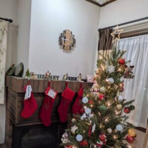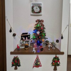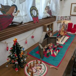 玄関の中には海外製の小さなツリーやキリストの厩のお人形、そして暖炉の前にはチムニっ子たちが飾りつけをしてくれたオーナメントいっぱいのクリスマスツリー🎁🌟