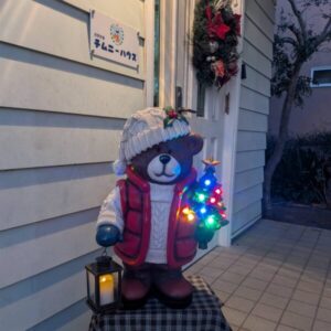 お外は、昨年よりバージョンアップしたLEDライトがより明るく輝き、玄関前ではかわいいクマちゃんがお出迎え🐻✨