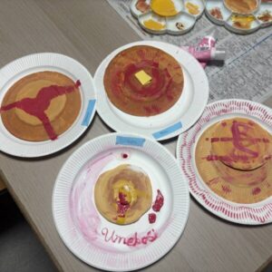 さらにパンケーキのクラフトも作って、色鮮やかなマルディグラの雰囲気を楽しみました。