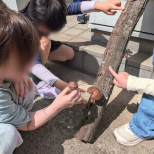 なかなか育たずにいたのですが、この春ついに芽を出し、立派なしいたけが顔を出しました✨